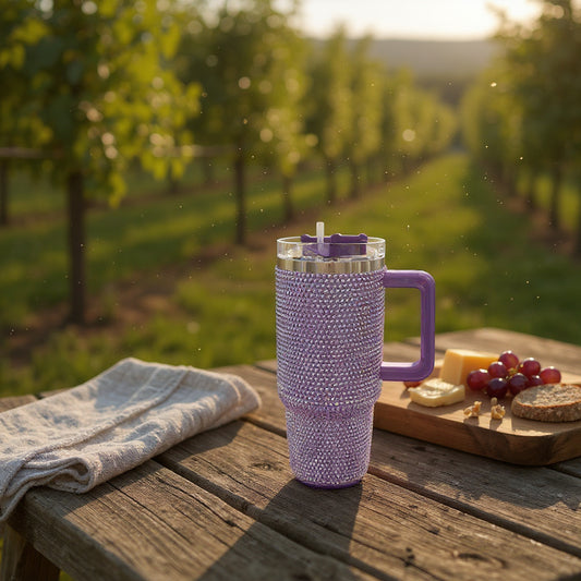 Shiny Rhinestone 40Oz Tumbler with Handle Stainless Steel Waterbottle